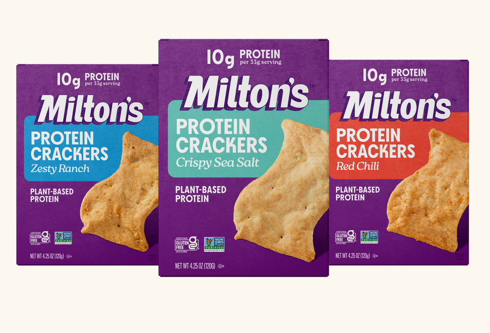 Discover Milton's Protein Crackers, packed with plant-based protein and a satisfying crunch. Perfect for snacking or pairing with your favorite dips.