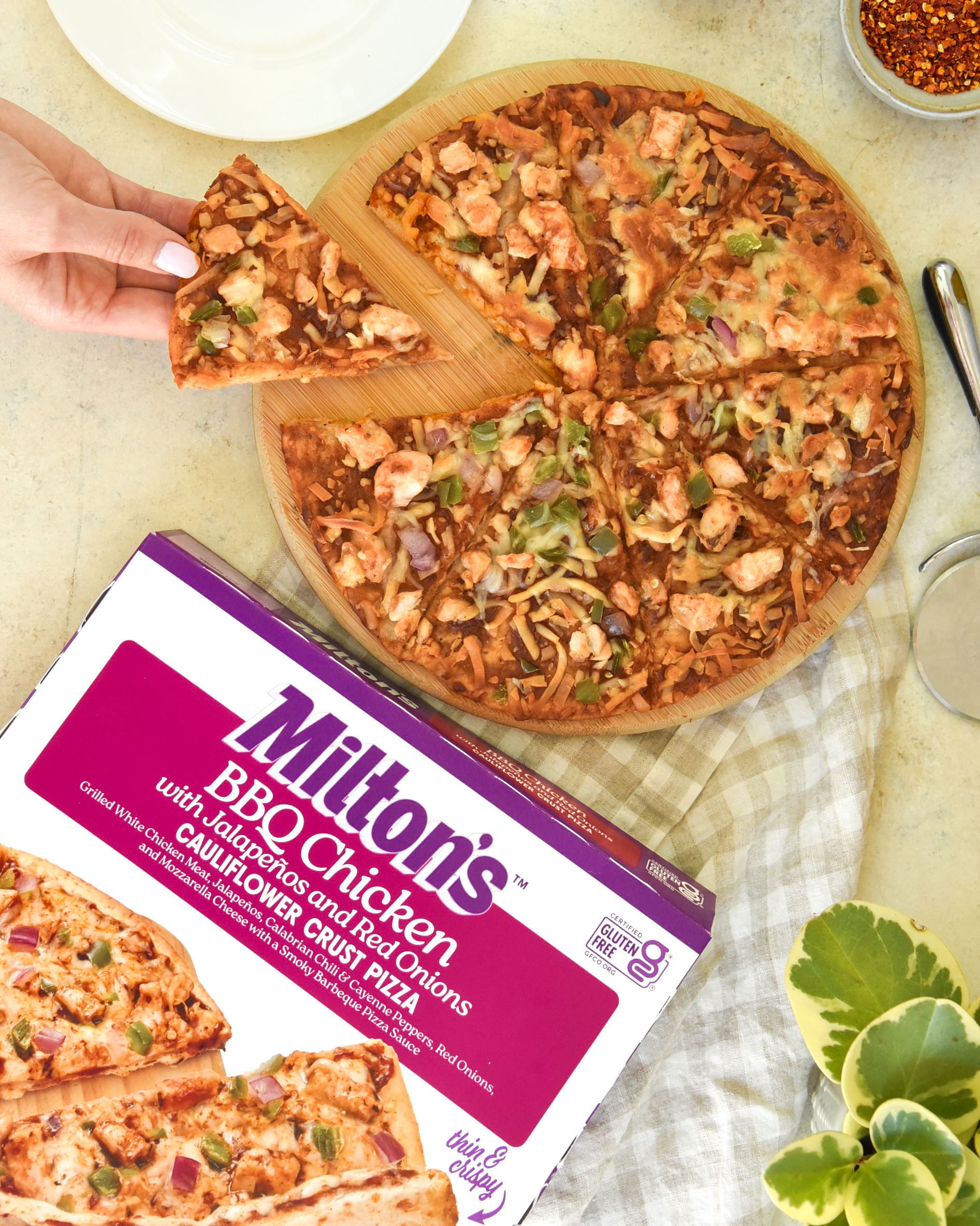 All-natural grilled chicken, tossed in a smoky barbeque sauce, meets jalapeños, Calabrian chilis, cayenne peppers, and red onions to deliver a perfectly balanced bite of spicy flavor that will keep you coming back for more.
